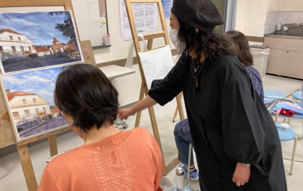 水彩画教室「アクアレール」を主宰するほか、水彩愛好家のサークルやカルチャー教室の講師も務めています。
