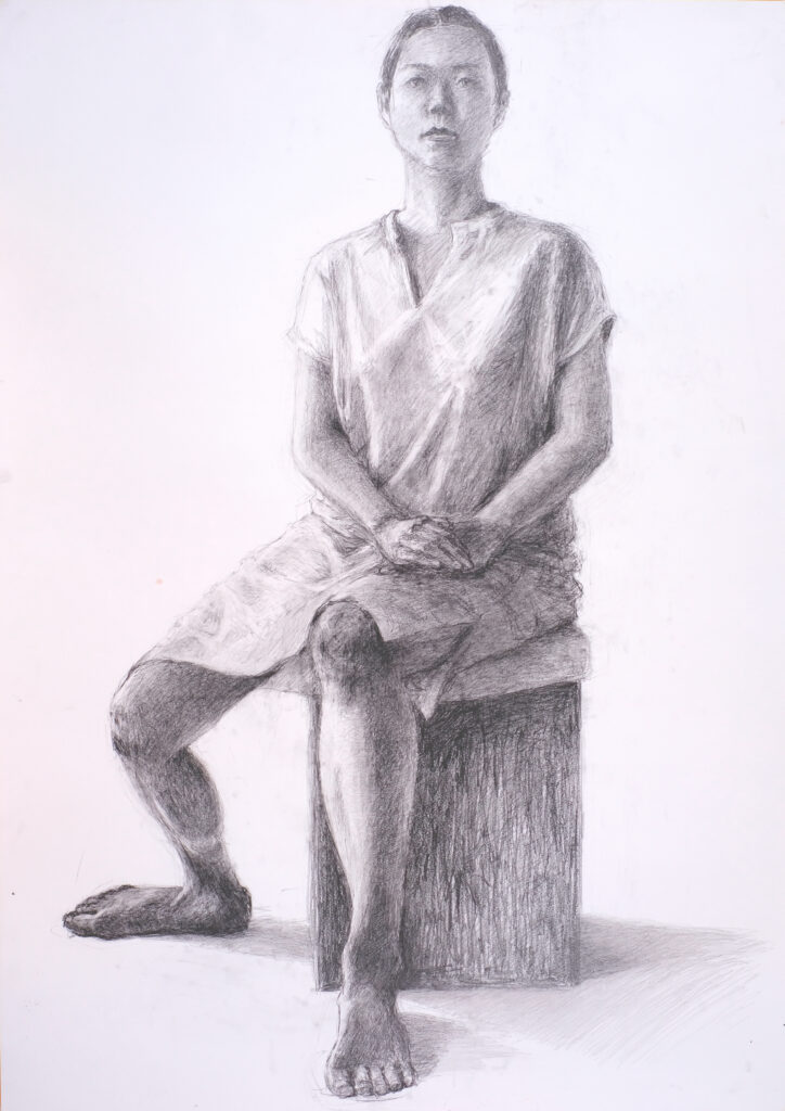 「額縁の中の少女」の油彩古典技法による模写(部分)